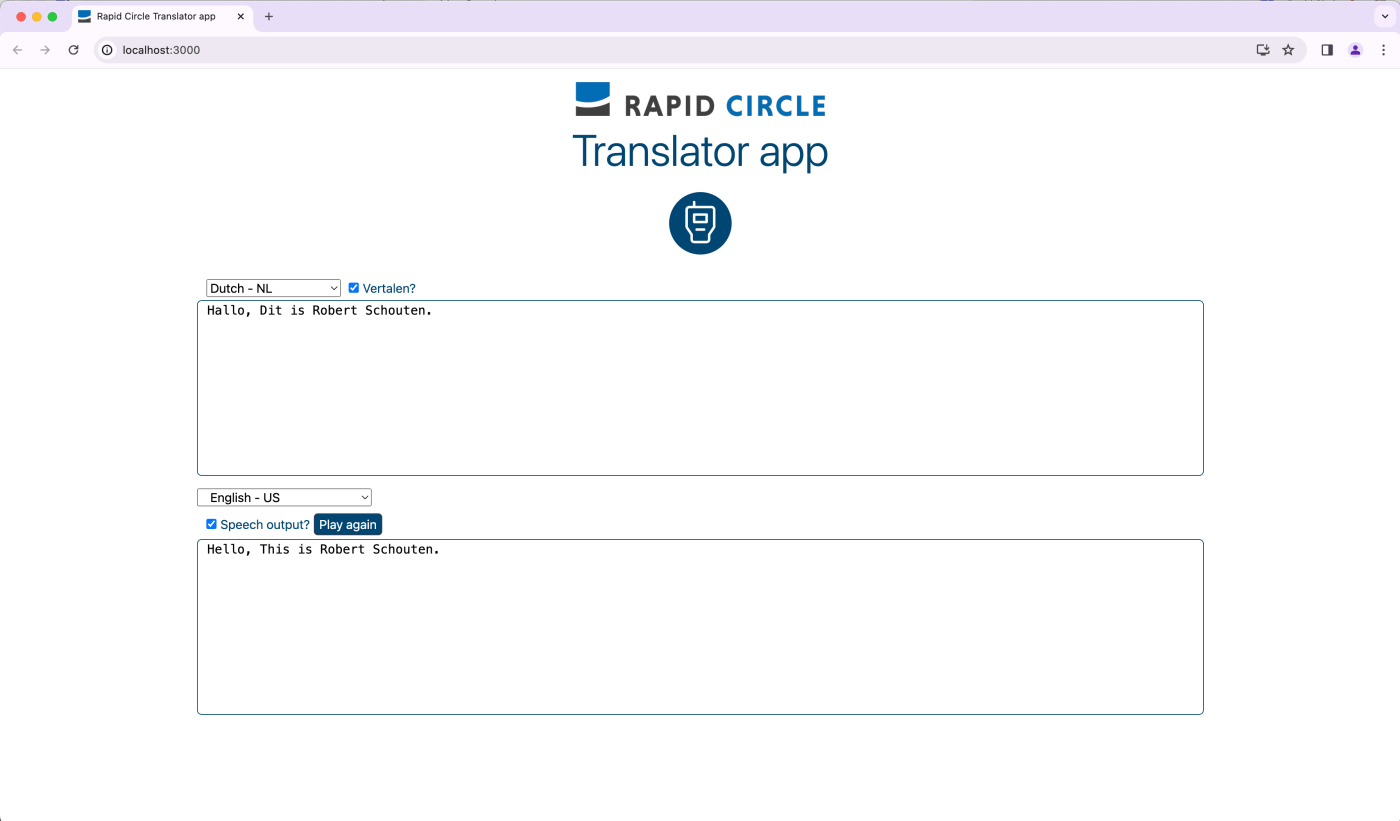 Now that we can speak to our microphone, get the text as a string and convert it back to speech again, we can do some really cool scenarios. But if we could translate the spoken text to a different language as text and transform this translated text back to speech again, we have a real-time translator app!